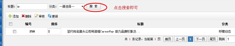 2、在文章顶端搜索栏内输入关键字、选择文章分类